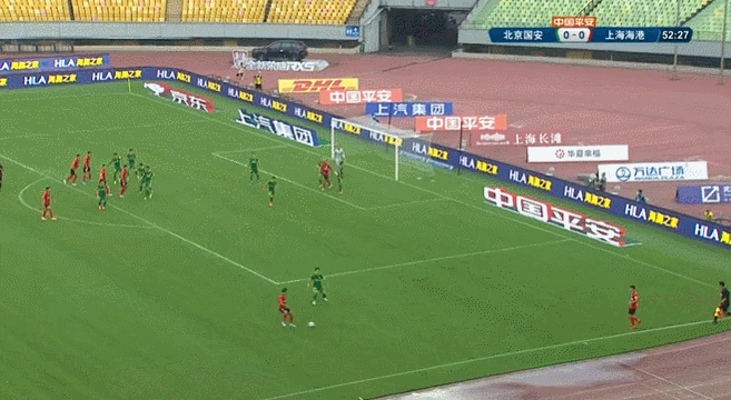 第27分钟,国安反击,王刚一脚似传似射皮球被颜骏凌点出底线。