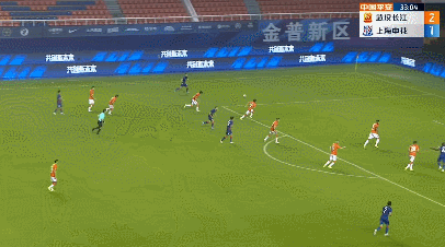 半场补时1分钟后,裁判吹响中场休息的哨声,长江暂时2-1领先于申花。