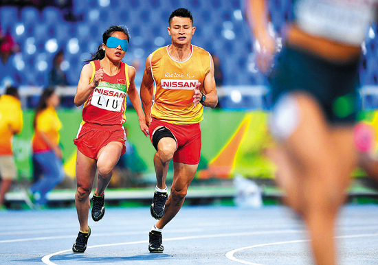 残奥会比赛项目中,运动员的运动级别以一个英文字母加上一个双位数字组成。英文字母代表比赛的项目,比如F级为田赛(Field)、T级为径赛(Track)、S级为游泳(Summer)。