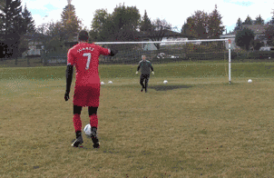 当守门员给我让出一定的角度让我可以看到其身后的球门一角时,只需要这样简单的将球推向球门一角便可形成得分。
