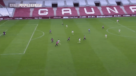 第42分钟,西班牙人攻入第2球!西班牙人反击机会,西班牙人攻入前场,洛格朗尼斯站位有些散乱,最终奥斯卡-希尔右路起球传中,达德尔中路插上,头球冲顶得手!0-2!