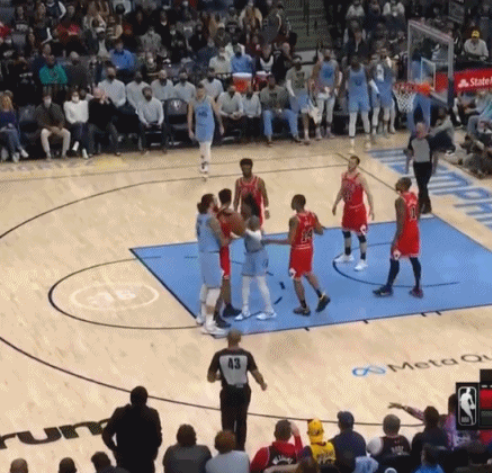 在比赛中两队发生了火气冲天的一幕,当时比赛进行到第四节还剩5分32秒的时候,灰熊队进攻,由莫兰特外线持球准备突破,此时公牛的防守者托尼-布拉德利不知怎么想的,用了一个足球运动中才会用的伸腿阻拦,这直接让莫兰特火冒三丈,导致双方爆发冲突。莫兰特直接拿球球往布拉德利脸上怼,后者则是拽着莫兰特的球衣。此时场面一度混乱,灰熊中锋亚当斯经验丰富,拍马赶到将公牛队员布拉德利双手抱走,避免了事态进一步的恶化,最终莫兰特与布拉德利双双吃T。主场球迷在这种时候纷纷力挺主队,给莫兰特送出MVP的欢呼。