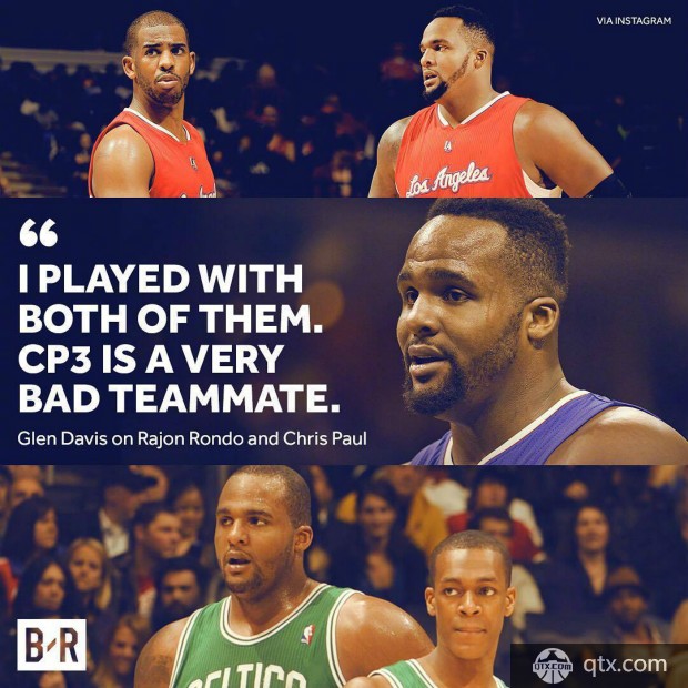 在隆多发表这段后之后,美媒BLeacher Report用官方账号将他的原文发布在了社交媒体上。随后戴维斯在下方评论道:“他们俩都是我此前的队友,保罗确实是一个很糟糕的队友。”此前,在NBA效力期间的戴维斯和隆多及保罗都是队友,他于2007-2010赛季在凯尔特人和隆多做过队友,于2013-14赛季在快船又和保罗短暂做过队友。