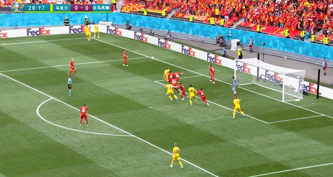 第28分钟,北马其顿防线再次出现漏洞,被乌克兰轻松直塞打穿,亚尔莫连科获得近距离直面门将的机会,一脚射门被防守球员挡出。