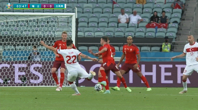 第6分钟,瑞士取得领先,塞费罗维奇禁区前左侧得球转身低射,皮球直挂死角,恰基尔做扑救但无济于事。瑞士1-0土耳其!