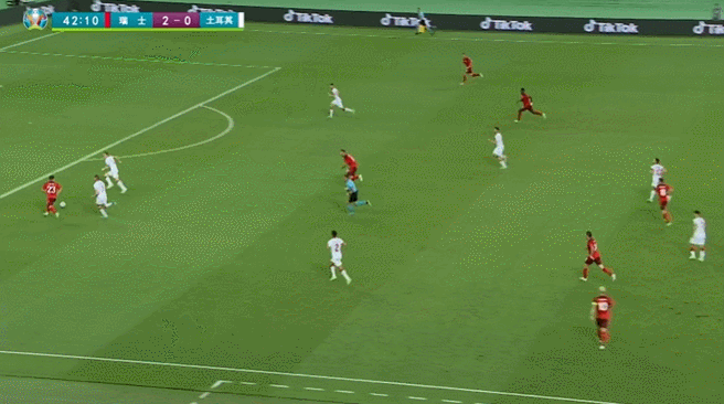 第68分钟,瑞士中场打出配合,祖贝尔斜传,沙奇里传球禁区中路施射破门,瑞士3-1土耳其!