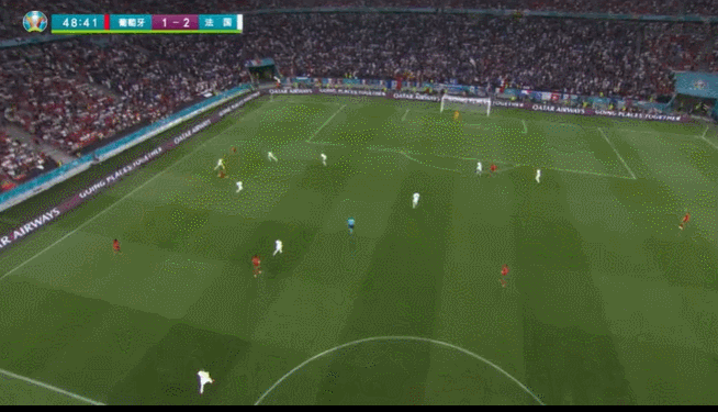 下半场刚开赛两分钟,博格巴送出一记长传,本泽马快速前插至禁区右侧起脚低射,皮球击中立柱弹进球门!葡萄牙1-2法国!