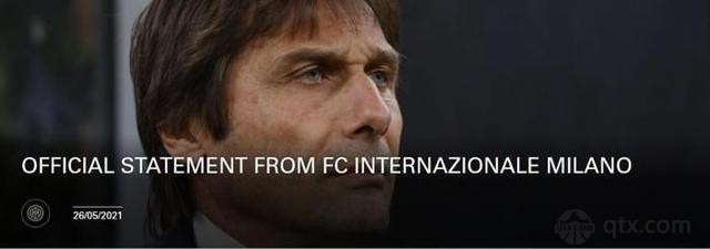 国米官方宣布孔蒂离任