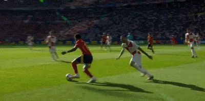 第29分钟,西班牙发动反击,法比安精准直塞,莫拉塔单刀突入禁区低射破门,西班牙1-0克罗地亚!
