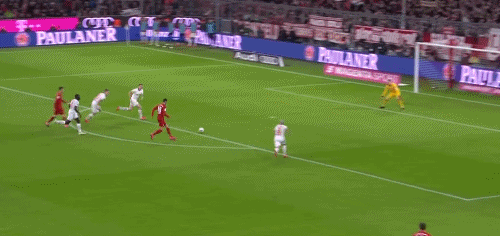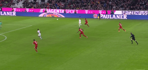 第39分钟,穆勒右路传中,莱万禁区左侧小角度攻门,皮球被于帕梅卡诺挡出。