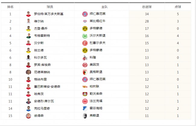 2020-2021年德甲联赛最新射手榜(实时更新)