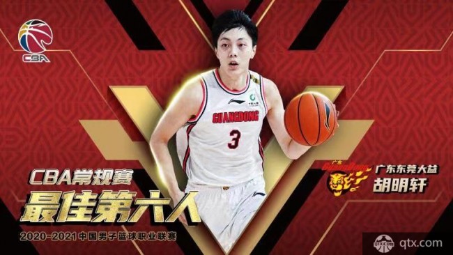 北京时间4月15日,CBA联赛官方正式宣布广东东莞大益后卫胡明轩当选赛季最佳第六人。