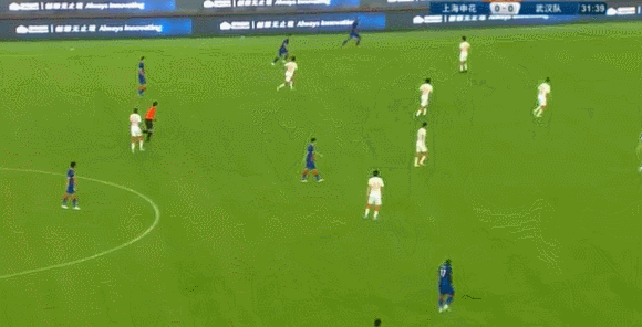 第40分钟,武汉前场任意球,皮球被吊入禁区后,申花球员头球解围。