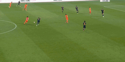 第37分钟,佩莱梅开二度!佩莱在前场接应队友的传球,背身倚住防守球员拿住皮球转身向前,在进入禁区前将球分给右路的队友金敬道,而后自己前插至小禁区内,金敬道送出45%传中准备地找到前插的佩莱,后者轻松推射建功!0-3!