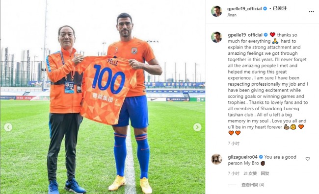 佩莱发文告别鲁能和球迷: