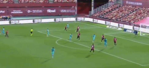 第79分钟,梅西中路挑传,阿尔巴禁区左侧单刀破门,马洛卡0-3巴萨!