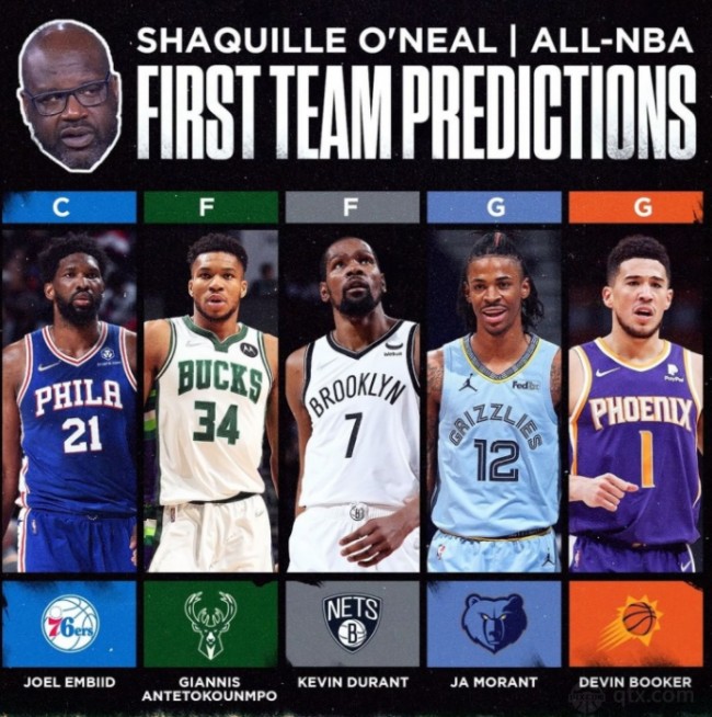 据悉,奥尼尔预测的本赛季最佳阵容一阵分别是76人球员乔尔-恩比德、雄鹿球员扬尼斯-阿德托昆博、篮网球员凯文-杜兰特、灰熊球员贾-莫兰特以及太阳球员德文-布克。
