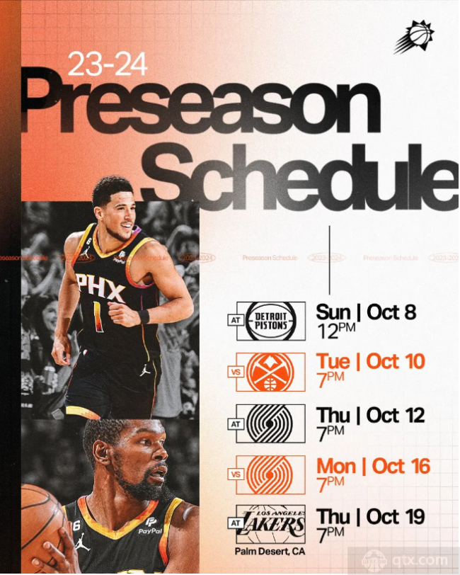 太阳官方公布季前赛赛程 迎战卫冕冠军掘金和湖人