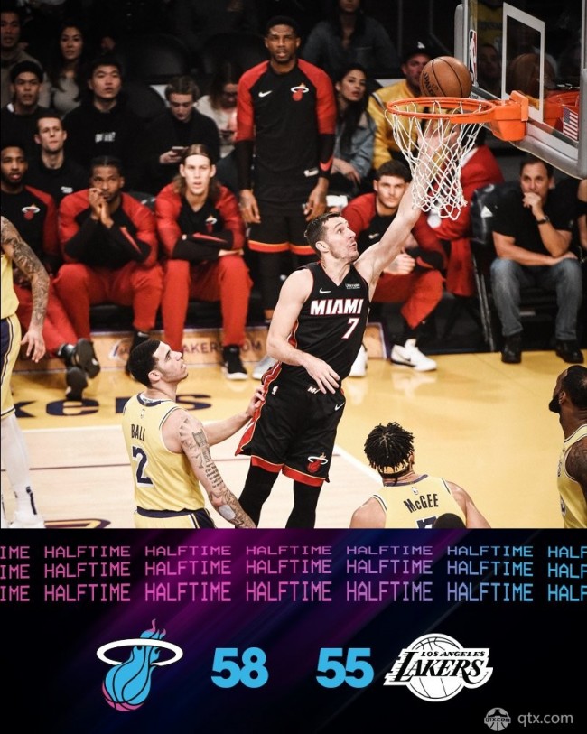 首节开打,热火反客为主取得领先,不过随后湖人打出6-0的小高潮反超比分。比赛中段,本场主角韦德替补登场,他一上来就连续助攻队友得分,湖人则是由詹姆斯和库兹马予以回应。首节结束,湖人27-23领先热火。次节上来,湖人进攻效率下降,热火趁势打出7-0的小高潮将比分超出,随后双方上演了对飙三分的好戏,波普连续命中两记三分紧咬比分,末段库兹马和小德里克琼斯更是分别献上了精彩的劈扣。半场战罢,热火58-55反超湖人。