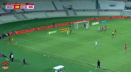 第33分钟,阿曼前场断球后,哈尔西右路下底传中,艾哈迈迪头球偏出。