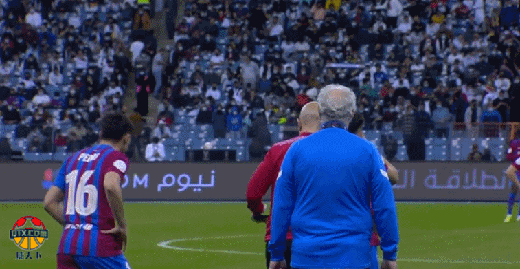 第93分钟,巴萨开出左侧战术角球,阿布德后点无人盯防将球顶偏。