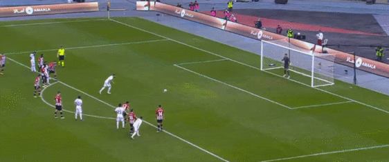 第63分钟,毕尔巴鄂竞技挑传,加西亚甩头攻门偏出底线。