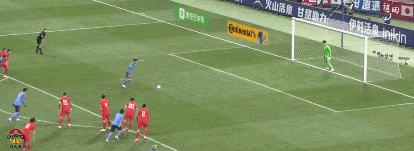 第23分钟,伊东纯也任意球传中,张玉宁及时将球顶出底线。