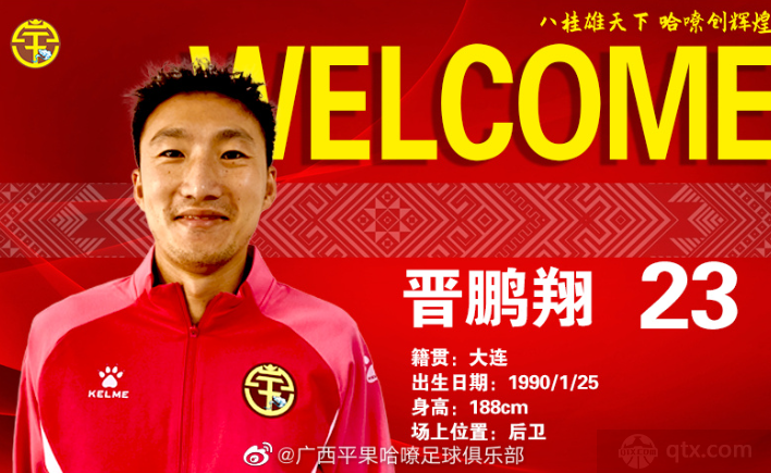 广西平果哈嘹官方微博表示:经与相关俱乐部及球员本人协商一致,即日起李学鹏、胡人天、高嘉润、晋鹏翔、宋志伟5名球员加盟广西平果哈嘹足球俱乐部,将代表球队征战2023赛季各项赛事。