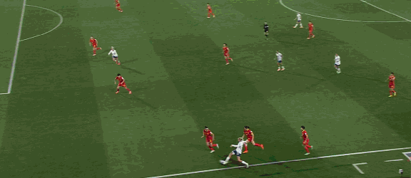 第4分钟,英格兰通过左路传切配合率先破门,23号鲁索禁区边缘推射近角,一记低平球位英格兰取得1-0领先。
