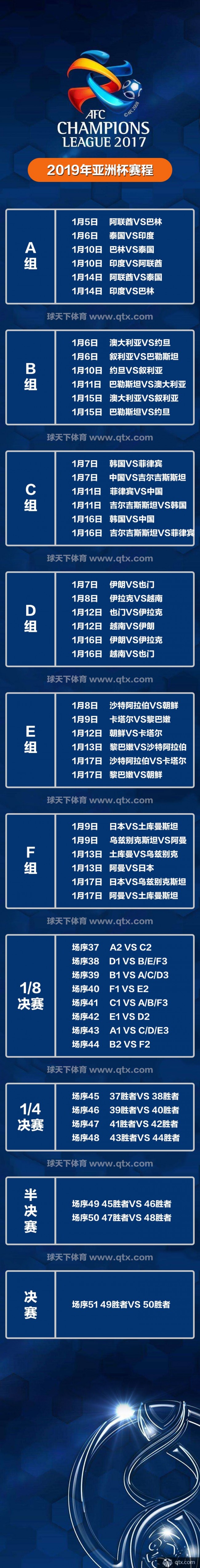 2019亚洲杯赛程表及开赛时间一览(收藏版)