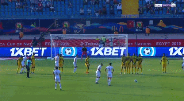 第5分钟,突尼斯获得前场任意球,哈兹里直接攻门击中门框。