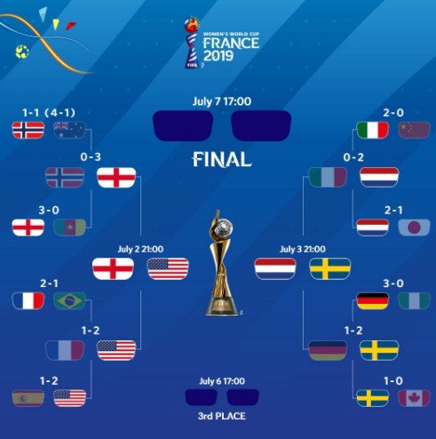 女足世界杯半决赛对阵:英格兰遭遇美国 荷兰迎战瑞典