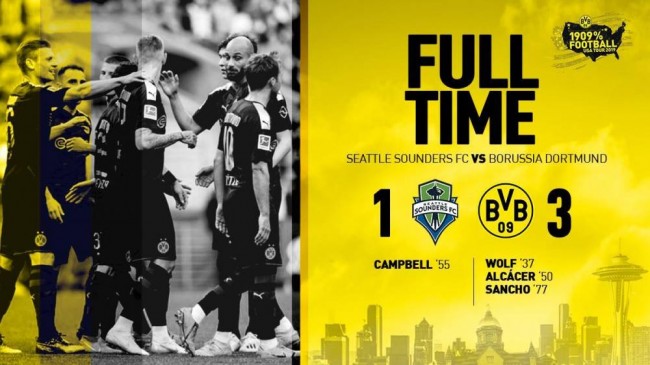 最终全场比赛结束,多特蒙德3-1战胜西雅图海湾人。