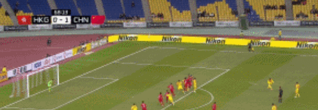第9分钟,中国队开出左侧角球至禁区,混乱中吉翔头球破门,国足1-0领先中国香港!
