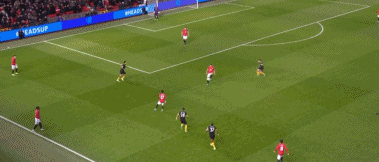 第67分钟,曼联快速反击,马塔接马夏尔直塞突入禁区单刀挑射破门,曼联1-0狼队。