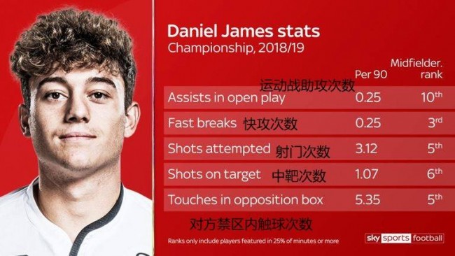 数据统计,詹姆斯上赛季每90分钟的快攻次数排名联赛第三,每90分钟他在对方禁区触球次数排名英冠第五,他的速度让他在进攻三区处于极具威胁的位置。