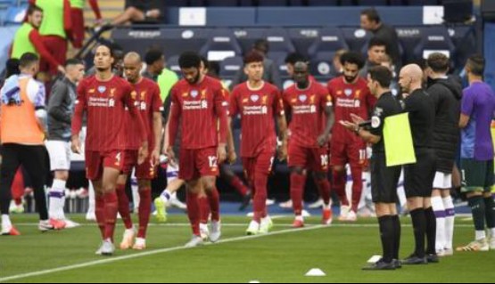 曼城在开球前向冠军利物浦致敬