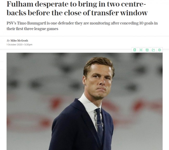富勒姆试图在10月5日转会窗口关闭前引进两名新的中后卫,俱乐部正在关注PSV埃因霍温阵中现年24岁的德国后卫蒂莫-鲍姆加特尔。(电讯报)