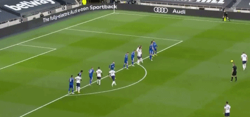 第73分钟,热刺获得前场定位球,贝尔主罚直接攻门,打飞。