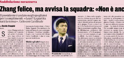 在更衣室中,张康阳向球队表示祝贺,同时对球队做出激励,提醒队员们比赛还没有结束。他在讲话中表示球队应该专注接下来在主场和萨索洛的比赛,然后再去考虑第二回合和米兰的比赛。