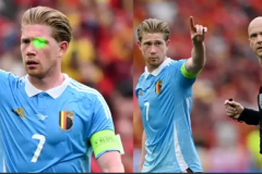 nba直播6月27日讯 比利时队长凯文·德布劳内在对阵乌克兰的2024年欧洲杯比赛中多次被乌克兰球迷用激光照射进行干扰,这让他感到愤怒。在球队的最后一场小组赛中,当比利时攻击型中场站出来主罚定位球时,一束