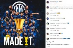 国米主席张康阳发文庆祝意大利杯夺冠 将继续荣耀