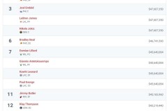 本季NBA薪资前15球员全出局 戈贝尔随队打进西决走的最远