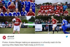 离开阿森纳帅位后,68岁的温格再度重归绿茵,他不是以教练的名义,而是亲自披挂上阵,并攻入一球。这场慈善赛在法国南锡进行,目的是为了患病儿童筹款,同时也是为了悼念在去年12月离世的普拉蒂尼父亲。据推特上