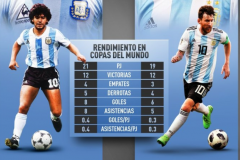 梅西马拉多纳世界杯各项数据对比一览 老马出场数进球助攻数均更多