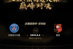 巴黎圣日耳曼北京时间8月3日晚19:30,法国超级杯决赛将上演激烈厮杀,本场比赛将在中国深圳体育中心球场进行。对阵双方分别是上赛季法甲冠军巴黎圣日耳曼以及上赛季法国杯冠军雷恩,双方此前有过多次交锋,巴