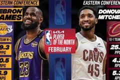nba直播3月5日讯 NBA在今日通过官方宣布东部分区的多诺万·米切尔和西部分区的勒布朗·詹姆斯分别获得二月份最佳球员。在二月份的时候,米切尔率领克利夫兰骑士打出了10胜1负的联盟月度最佳纪录并有过4场单场砍下30+得分。詹姆斯则帮助洛杉矶湖人取得了10胜2负的战绩且个人表现同样极为出色。
