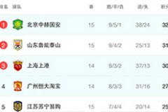 中超数据看半程冠军国安