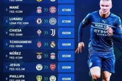 德转统计今夏转会球员身价最贵排名 哈兰德1.5亿欧排名第一琼阿梅尼转会费最贵