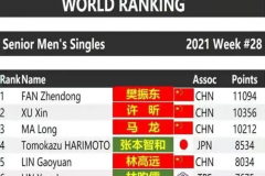 2021世界乒乓球最新排名:男单前5中国占4席 陈梦女单第1